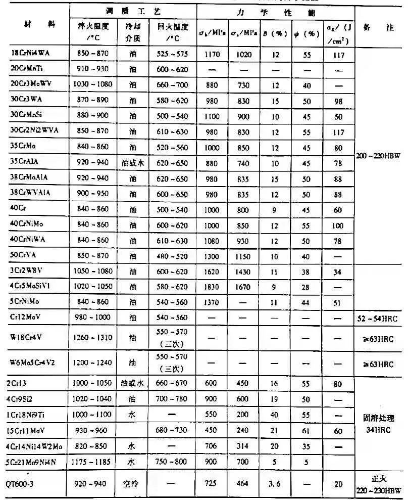 ▼表5 常用滲氮鋼的調質處理參數及力學性能