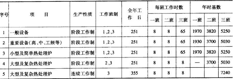 設備需要量可根據熱處理工序生產綱領和設備生產能力計算出設備年負荷時數,再計算出設備需要量。