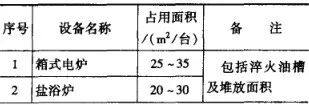 (2) 熱處理設備面積指標。各類熱處理設備所占車間面積指標如表19所示。