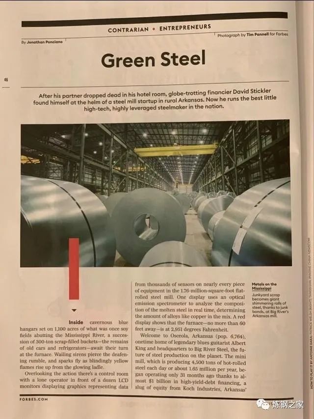 這是《福布斯》雜志記者描寫的有關大河鋼鐵廠的場景,大衛·斯蒂克勒是大河鋼鐵的CEO。