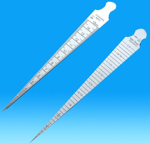 另外還用到一個(gè)比較專業(yè)的測量工具——錐形尺,來測量直尺表面與鋼上表面之間的距離h,因其他原因不能使用錐形尺也可以使用其他量具。