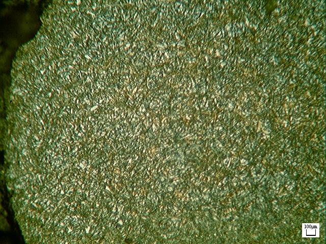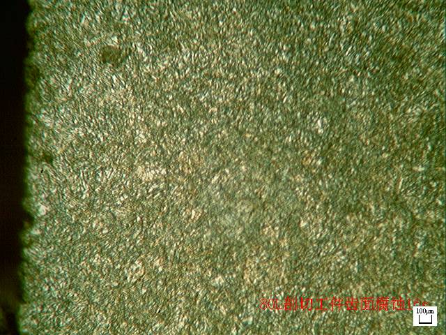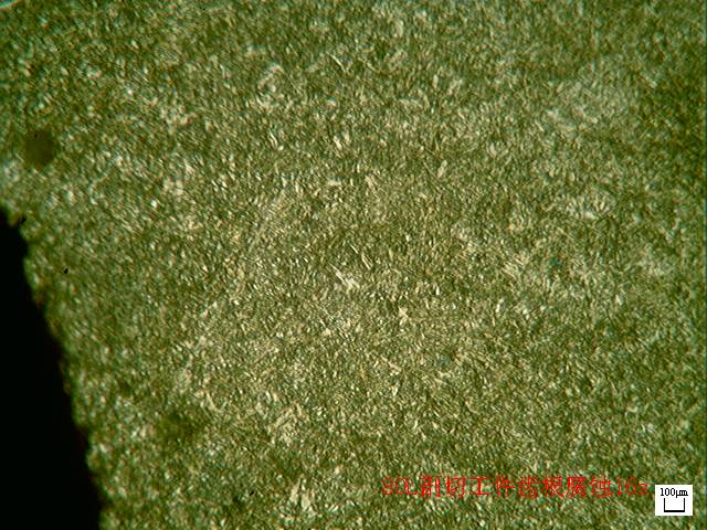 金相組織檢測表層馬氏體組織中,殘留奧氏體的含量最多為:10%~15%;組織表面應(yīng)是天鵝絨狀的細(xì)紋晶粒、發(fā)暗,晶粒周圍不得有滲碳體;根據(jù)UNI3245,奧氏體晶粒大小5-8級;表面脫碳的氧化層和屈氏體痕跡的最小層厚度(非馬氏體區(qū)域)允許最大15~20μm。