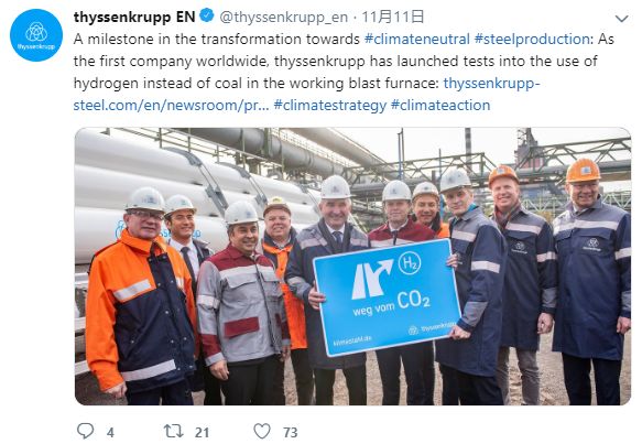 隨著德國(guó)蒂森克虜伯正式啟動(dòng)了世界第一次在煉鐵工藝中使用氫氣代替煤炭,也就意味著將來(lái)鋼鐵生產(chǎn)進(jìn)入了新的時(shí)代。