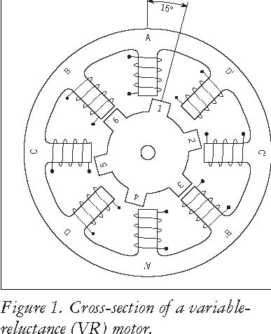 This type of stepper motor has been around for a long time. It is probably the easiest to understand from a structural point of view. Figure 1 shows a cross section of a typical V.R. stepper motor. This type of motor consists of a soft iron multi-toothed rotor and a wound stator. When the stator windings are energized with DC current the poles become magnetized. Rotation occurs when the rotor teeth are attracted to the energized stator poles.