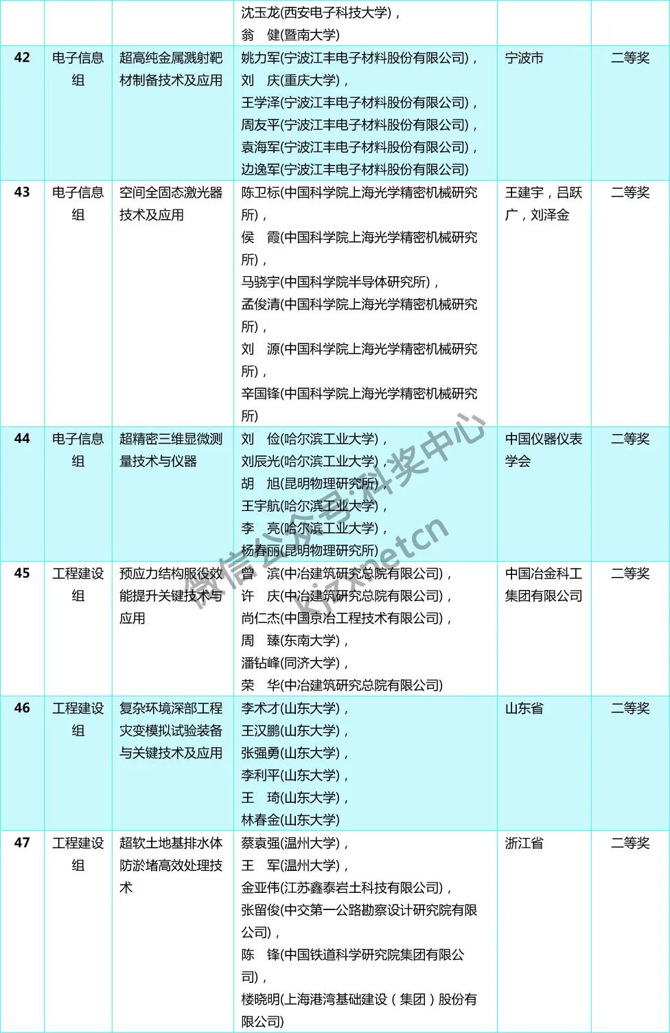 2020年度國(guó)家科學(xué)技術(shù)獎(jiǎng)初評(píng)工作已經(jīng)結(jié)束。根據(jù)《國(guó)家科學(xué)技術(shù)獎(jiǎng)勵(lì)條例實(shí)施細(xì)則》的規(guī)定,現(xiàn)將初評(píng)通過(guò)的46項(xiàng)國(guó)家自然科學(xué)獎(jiǎng)項(xiàng)目、47項(xiàng)國(guó)家技術(shù)發(fā)明獎(jiǎng)通用項(xiàng)目、133項(xiàng)國(guó)家科學(xué)技術(shù)進(jìn)步獎(jiǎng)通用項(xiàng)目,以及2019年度初評(píng)通過(guò)、因異議處理中止評(píng)審,現(xiàn)已調(diào)查處理完畢,按規(guī)則提交2020年度評(píng)審的國(guó)家技術(shù)發(fā)明獎(jiǎng)通用項(xiàng)目1項(xiàng)和國(guó)家科學(xué)技術(shù)進(jìn)步獎(jiǎng)通用項(xiàng)目1項(xiàng),在科技部網(wǎng)站(http://www.most.gov.cn)公布。專用項(xiàng)目另行公布。