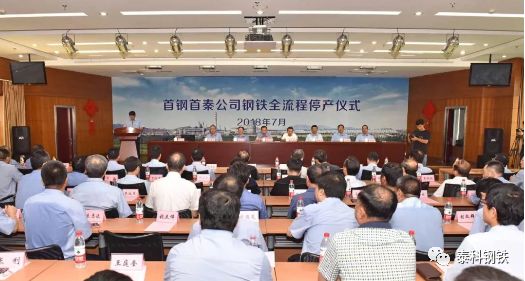 2018年7月12日,在莊嚴(yán)的國歌聲中,首秦公司鋼鐵全流程停產(chǎn)儀式舉行,標(biāo)志著首秦公司順利實現(xiàn)安全、穩(wěn)定、經(jīng)濟(jì)停產(chǎn),邁入搬遷轉(zhuǎn)移轉(zhuǎn)型發(fā)展新階段。