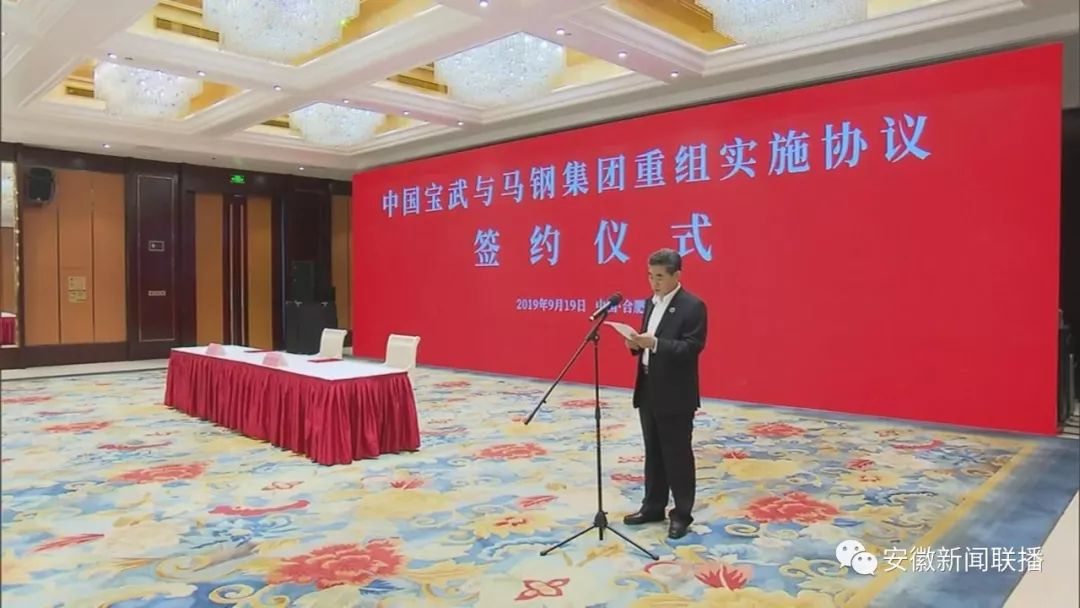 2019年9月19日下午,中國寶武與馬鋼集團(tuán)重組實施協(xié)議簽約儀式在合肥舉行。省委書記、省人大常委會主任李錦斌,國務(wù)院國資委黨委書記、主任郝鵬,省委副書記、省長李國英,省委副書記信長星等見證簽約。