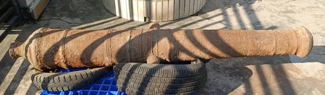 據白蕉一廢品站工作人員介紹,該鐵炮是從雙湖路跨雞啼門特大橋附近收購回來。收購時,原炮身還粘有黑泥和貝殼,推測此鐵炮為建橋施工時,由工人從地下挖掘出來的。