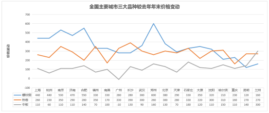 此外,從三大品種全國24個主要城市的波動來看,兩個特點顯著: