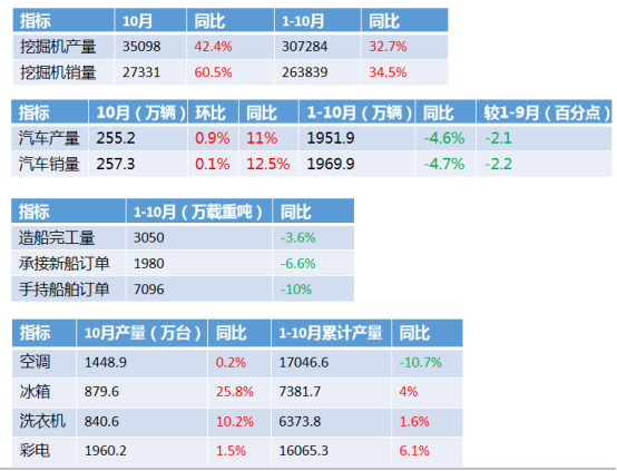 制造業投資穩步復蘇,1-10 月制造業投資下降 5.3%,降幅比 1-9 月份收窄 1.2 個百分點。從生產端來看,工業增加值中制造業貢獻率占比較高,且當前處于生產旺盛階段,隨著海外訂單回升,工業利潤回暖,市場對四季度預期較高。且制造業中,汽車占比較高,10月汽車制造同比增速達到14.7%,產銷同比和環比均呈現增加,10月汽車銷量同比增長12.5%,汽車產業的持續恢復給板材需求帶來支撐。同時,最近國常會提出提振大宗消費,第一條就是穩定和擴大汽車消費,政策支持力度不斷加大,有助于汽車產業恢復的進一步提速。