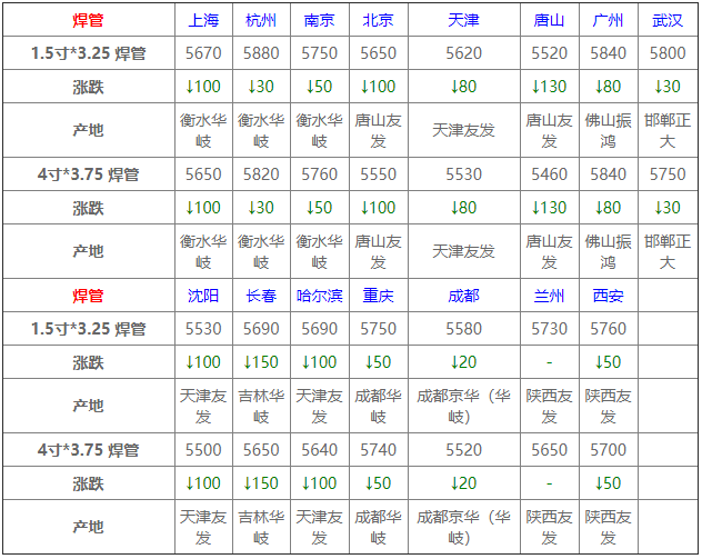今日開市,212日唐山市場焊管價格窄幅上調,成交尚可。據富寶鋼鐵網管材研究中心市場監測顯示:成都市場1.5*3.25成都京華焊管價格為5740元/噸,4*3.75成都京華焊管價格為5730元/噸,6*4成都京華焊管價格為5780元/噸。