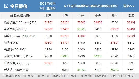 熱卷24個市場中16個市場上漲10-70,2個市場下跌40,4.75熱軋板卷平均價格5350元/噸,較上個交易日上調17元/噸;