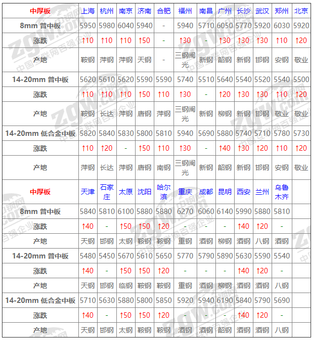 4 7月15日中厚板價格:上行為主; 今全國中厚板價格上調為主,幅度10-50左右,終端入市顯謹慎,上午高位交投偏弱,期貨及鋼坯持續高位,商家心態較有支撐,預計短期偏強整理;